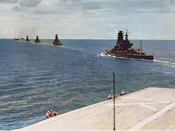 金刚号是一战前日本在英国订购的战列巡洋舰,随后日本利用其图纸在国内建造了后续的三艘姐妹舰。同其他日军战列舰一样,金刚号也在改装中拥有了高耸的舰桥。在二战初期,四艘金刚型是机动部队的主力护卫。44年的莱特湾海战中,金刚号编入栗田的一游部队。编队突破海峡之后在萨马岛遭遇了美军护航航母编队,交战之后编队北上。11月21日凌晨,金刚号被美国潜艇海狮号击沉在台湾海峡。