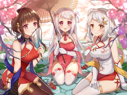 朝阳与黄昏都为海天带来了同样的金黄色泽。而今日的暂别,亦承载着明天的辉煌。挥别昨日,我们再出发! | 呐提督,这么重要的日子还迟到吗?豪华寿司拼盘我们已经吃掉不少啦。来,你的赏樱位置在这里哦。 |