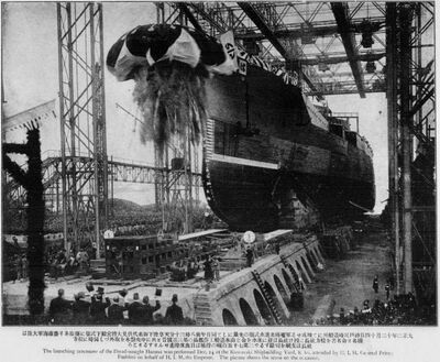 1913年12月14日榛名号下水,随后开始进行舾装作业,原本海军计划在1914年11月18日进行动力系统测试,但因动力系统故障推迟了6天。可能是对测试延迟抱有愧疚和负罪感,川崎造船所机械工程部部长篠田恒太郎自杀身亡。